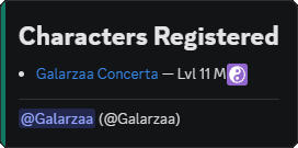 Sends a message when a member joins your server with basic information about them, like their Discord account age (to detect potential spam accounts). If you have a tracked world configured, it will also display the characters registered to that user.